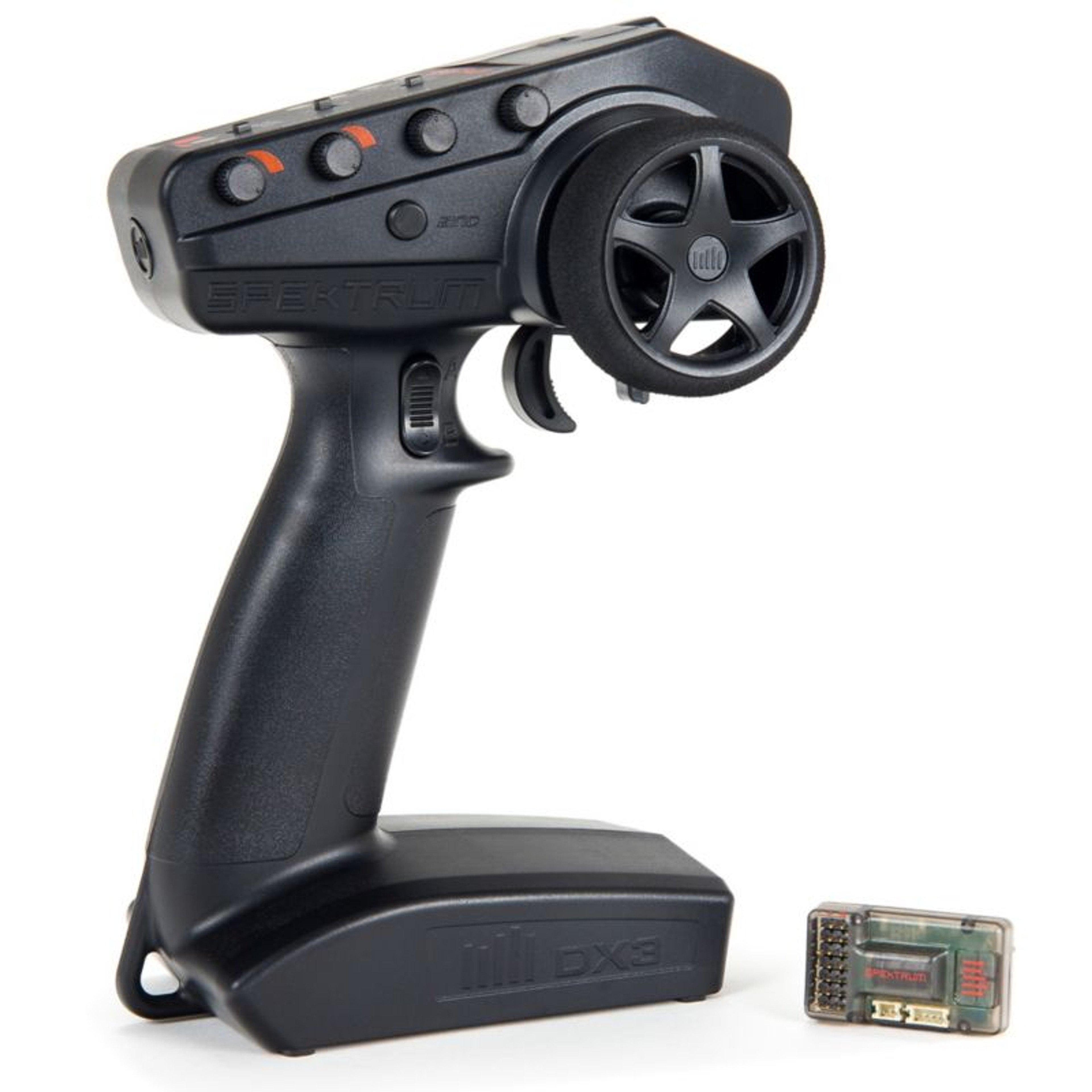 - Spektrum® 3-Channel DX3™ 2.4GHz DSMR® radio and SR6110AT Receiver with AVC® (Active Vehicle Control™)