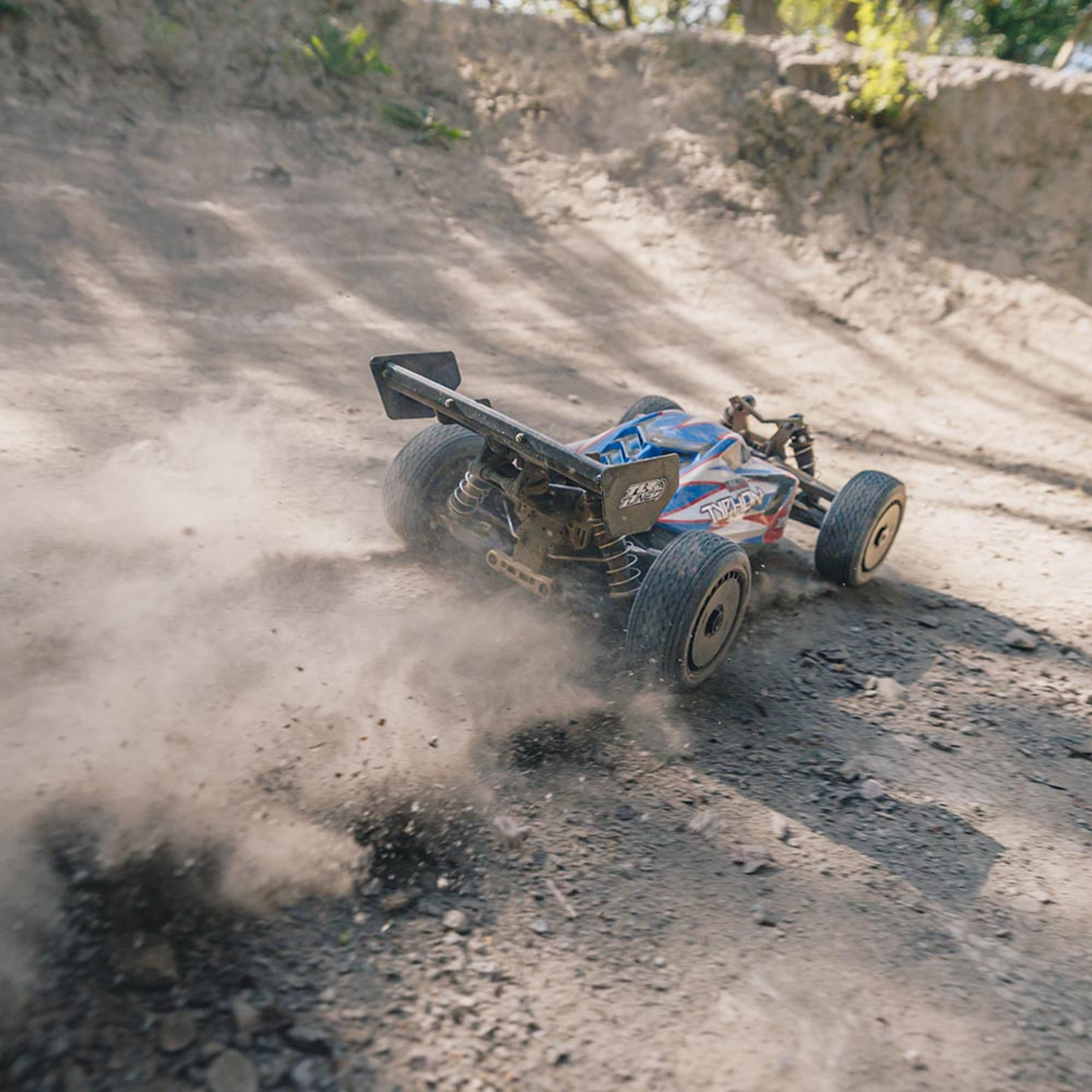 Loaded with upgrades to improve durability and handling, the TLR Tuned TYPHON 1/8 4WD Race Buggy adds chassis tuning and racing capabilities to the top-of-the-line ARRMA bash platform — as well as RTR convenience and proven Spektrum electronics.