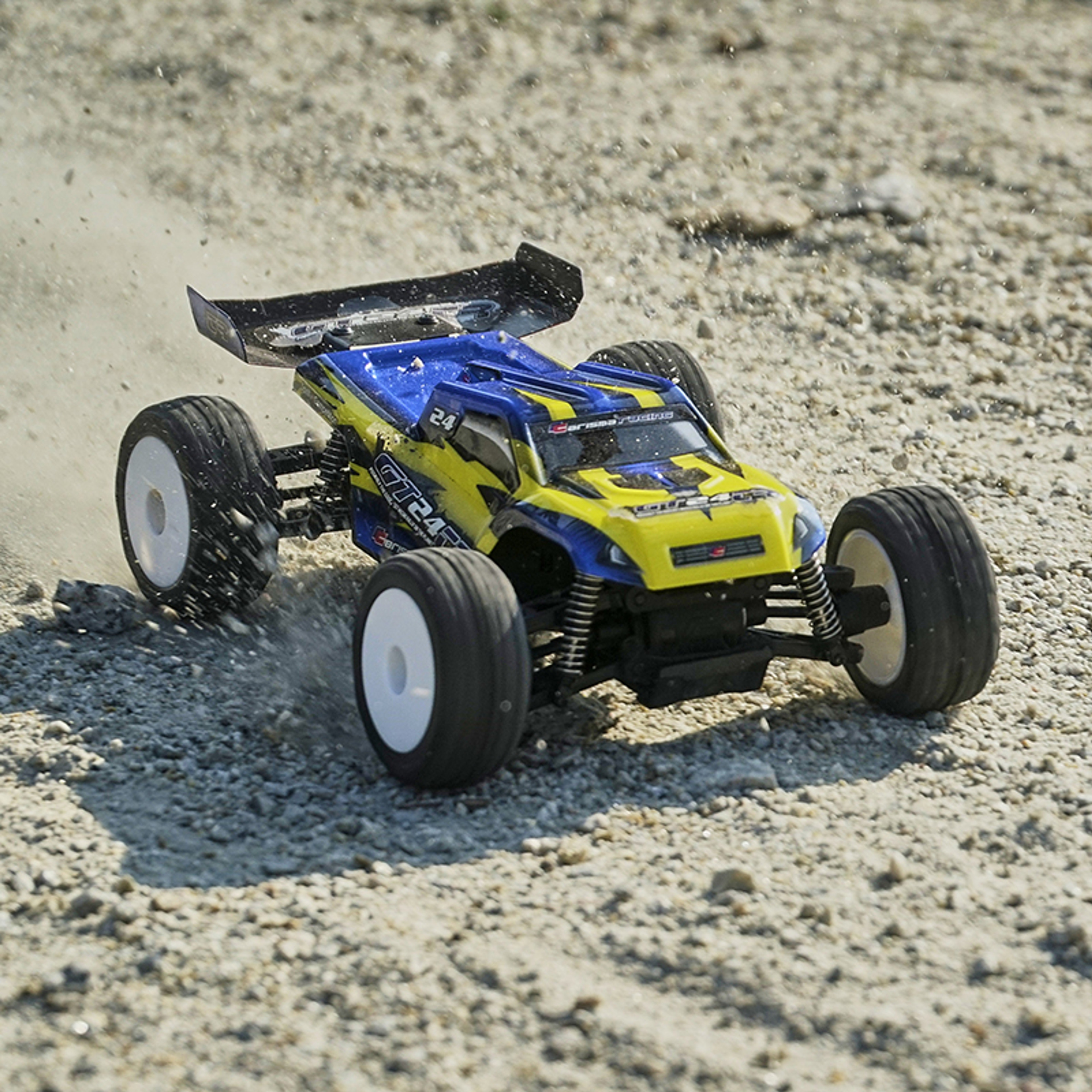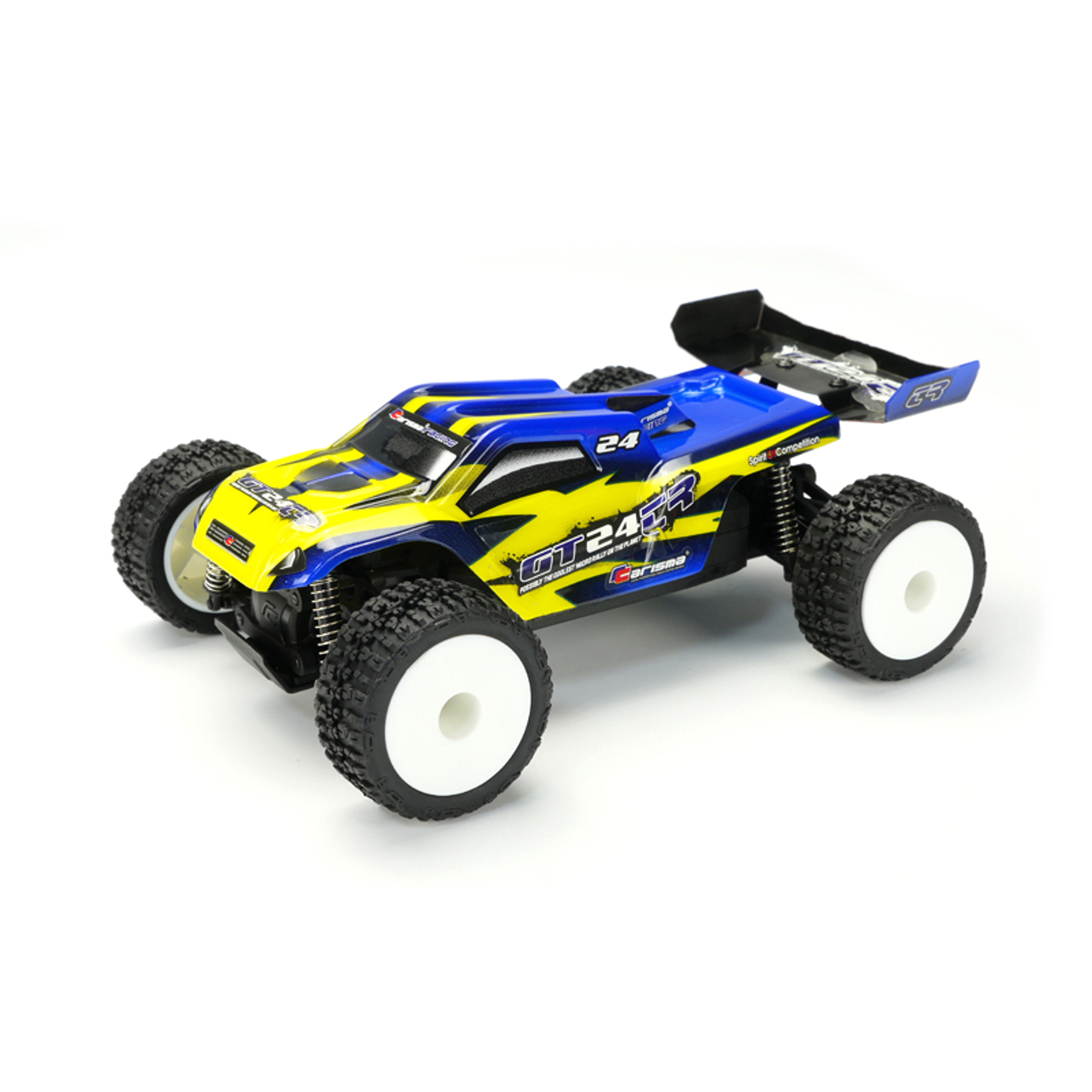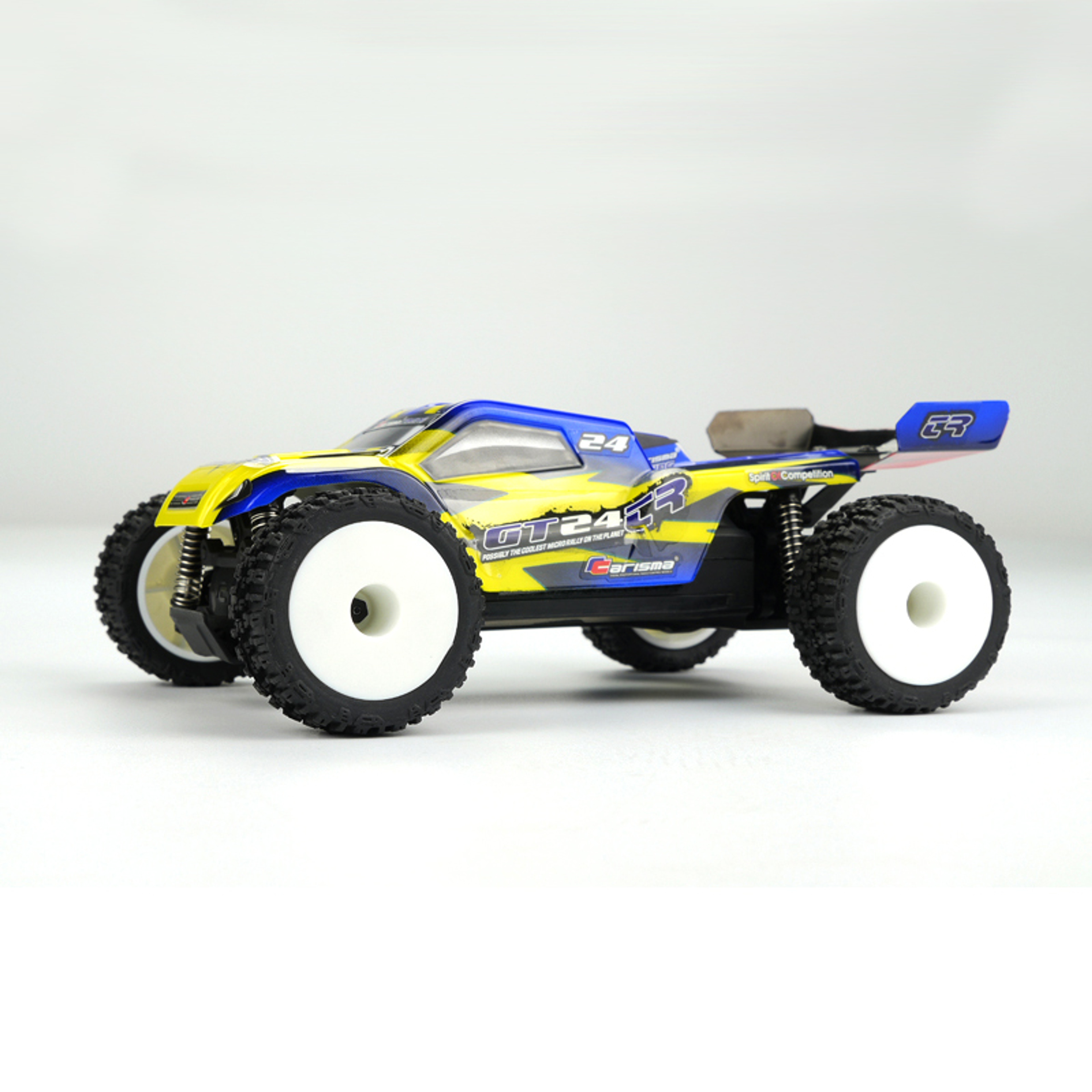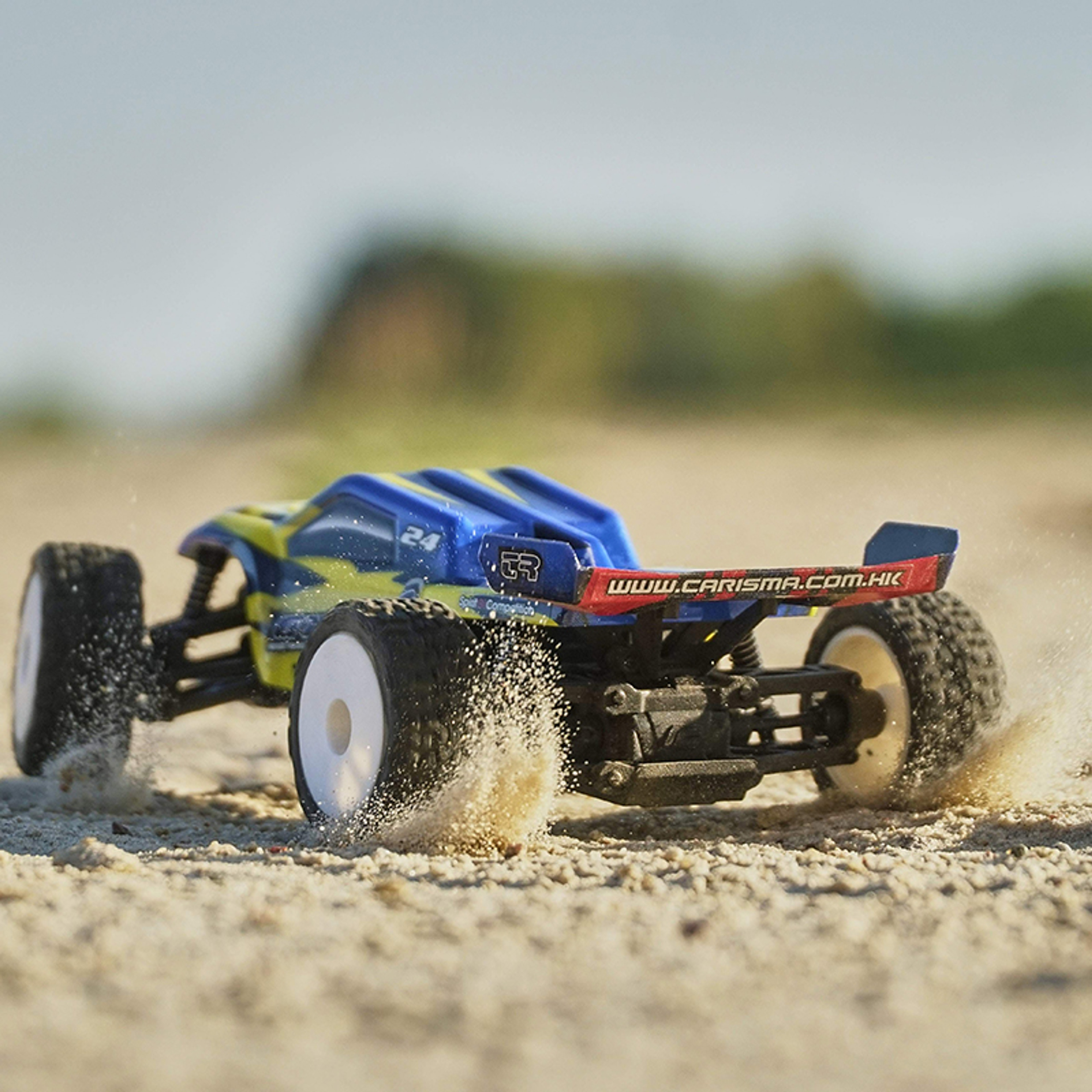 The Carisma GT24TR 1/24th Brushless Micro Truggy is a complete ready-to-run one-box 8000kv brushless micro RC car.