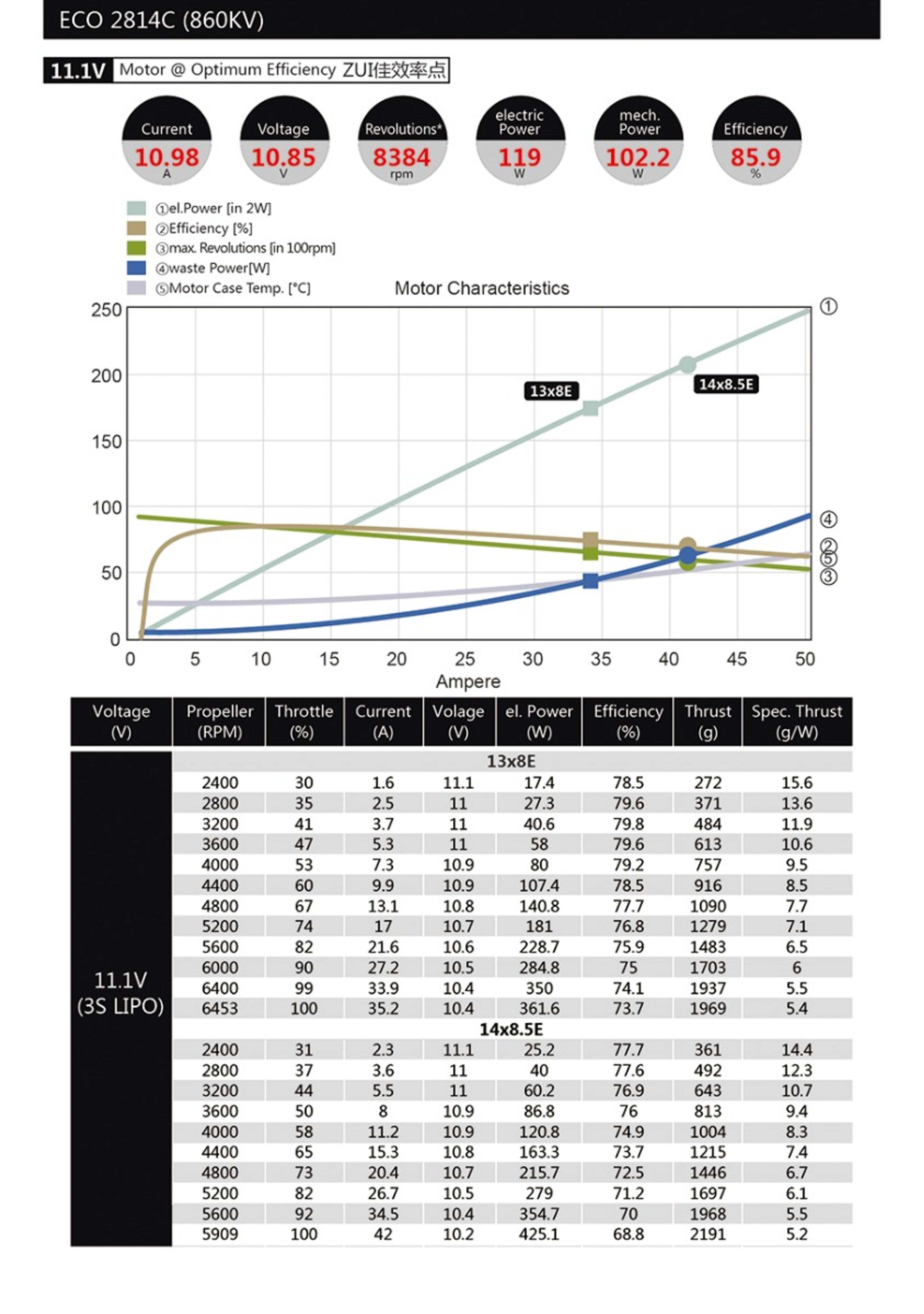 The 2814C ECO motor from Dualsky has 860Kv of power. This motor comes with propeller and motor mounts, in addition to gold plugs and screws. ECO V2 has made great improvements in many respects. It has a new electromagnetic design, more competitive performance and efficiency, long-time endurance and is waterproof.