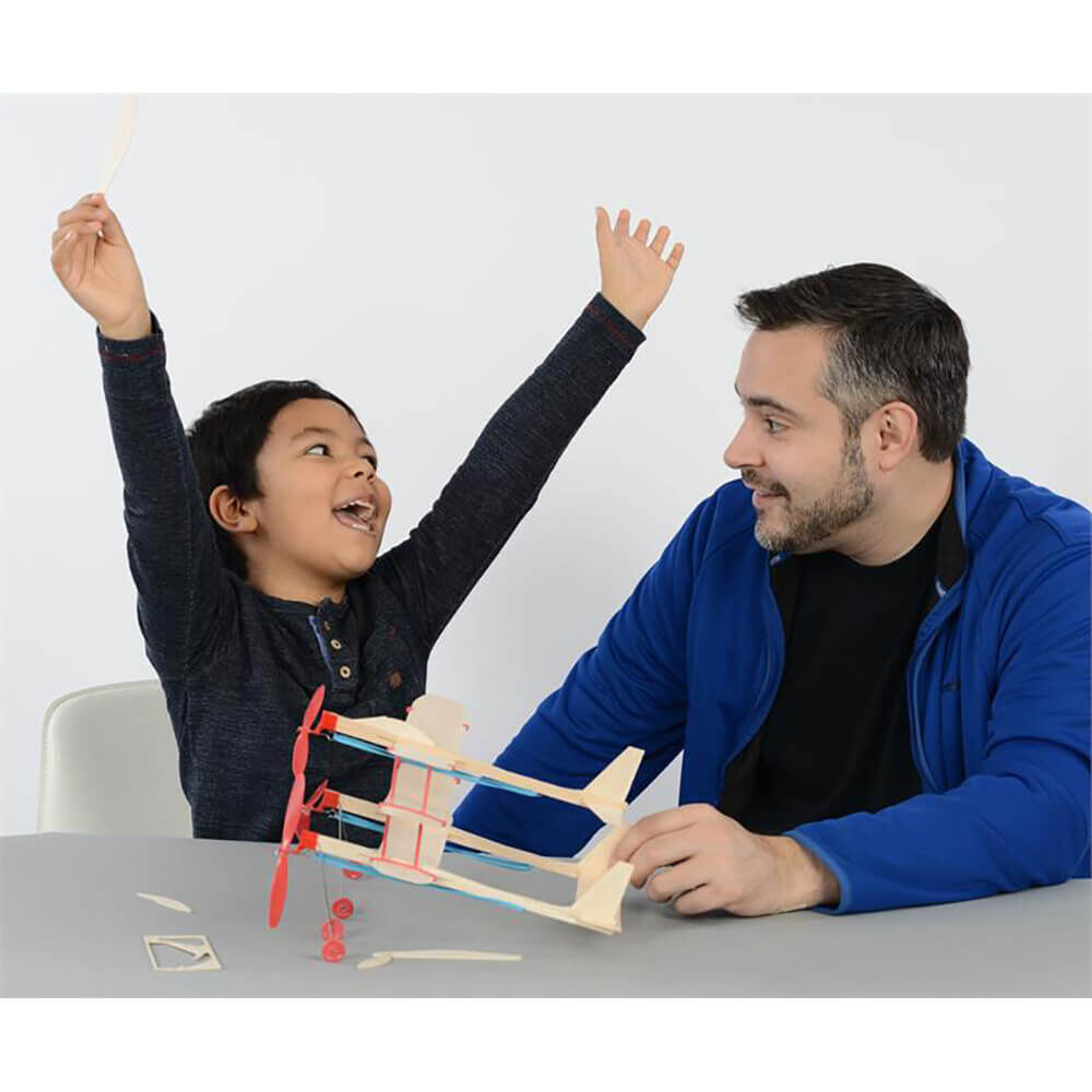 The Design Studio allows young aviators to build and fly planes out of their imagination. With over 35 parts (balsa wood wings, rudders, propellers, rubberband motors, wheels, etc), contained in a travel case so that you can design and fly from anywhere! Design it! Build it! Fly it!