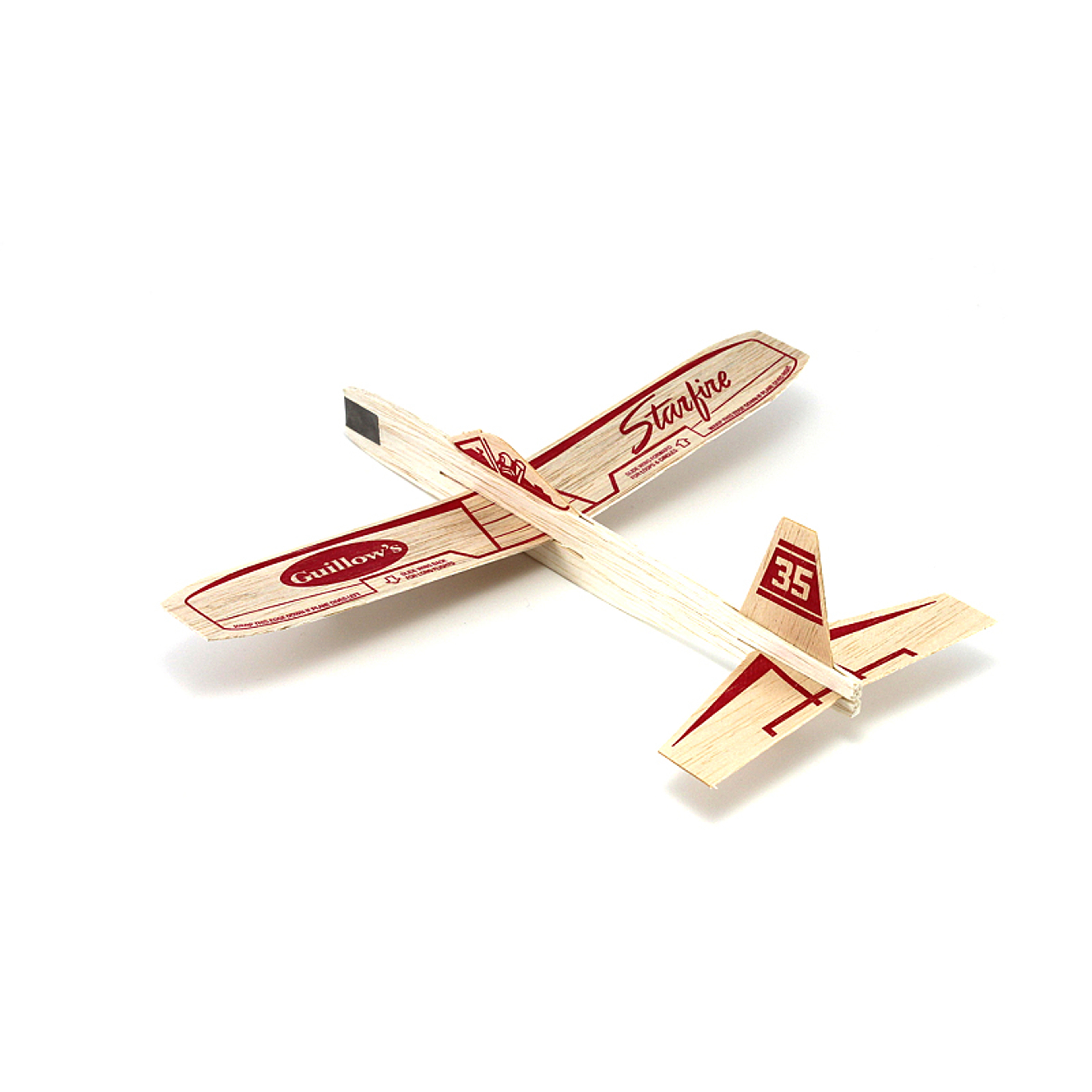 Guillow toy airplanes have been around for over 60 years providing millions of youngster's fun and enjoyment letting their imagination soar. This Starfire 12-inch chuck glider provides a catalyst that just naturally brings a smile to anyone that throws a toy glider into the open sky. A hefty glider especially designed for strong "baseball arms". Kids love to rear back and heave this racy job.
