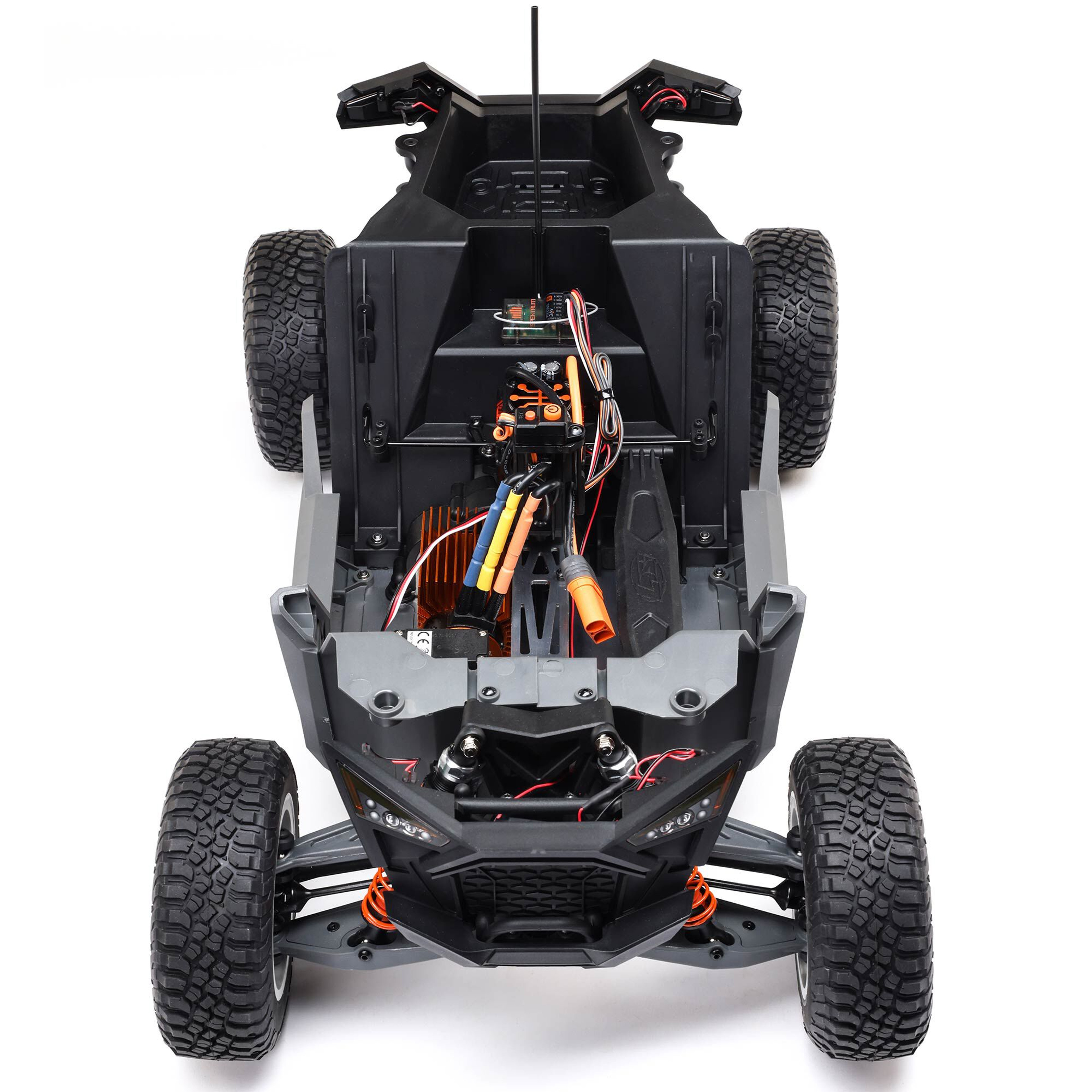 Indulge in your passion for UTV action anytime and anywhere! With the proven Rey platform and a new rear trailing arm suspension, the officially licensed 1/10 scale Losi Polaris RZR Pro R looks and performs just like the full-size desert SxS.