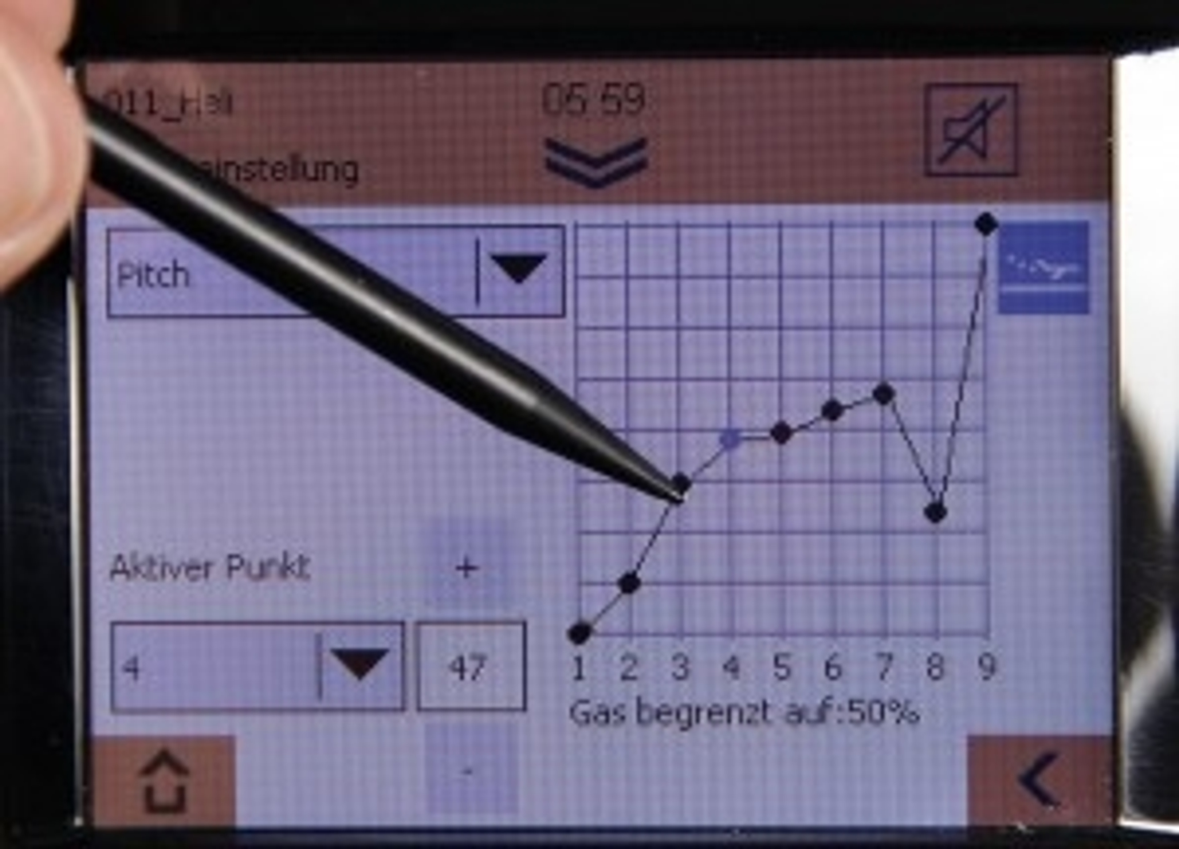 - Heli GAS and pitch curves (9 points) separately adjustable for each flight phase