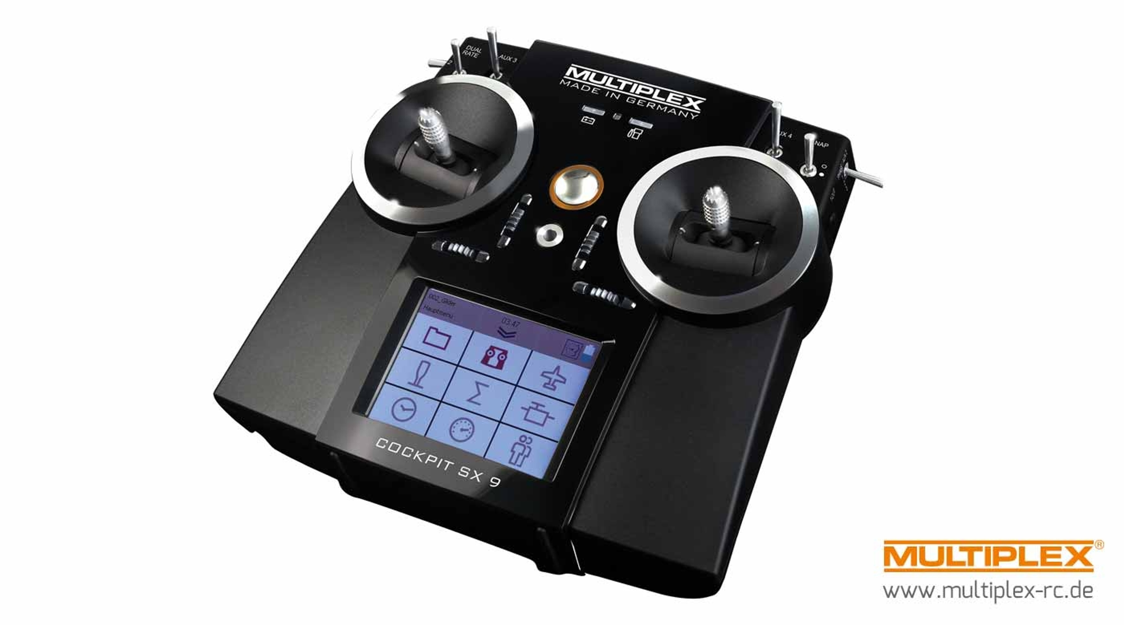 The MULTIPLEX COCKPIT SX 9 sets new standards in the field of 9-channel hand-held transmitters.