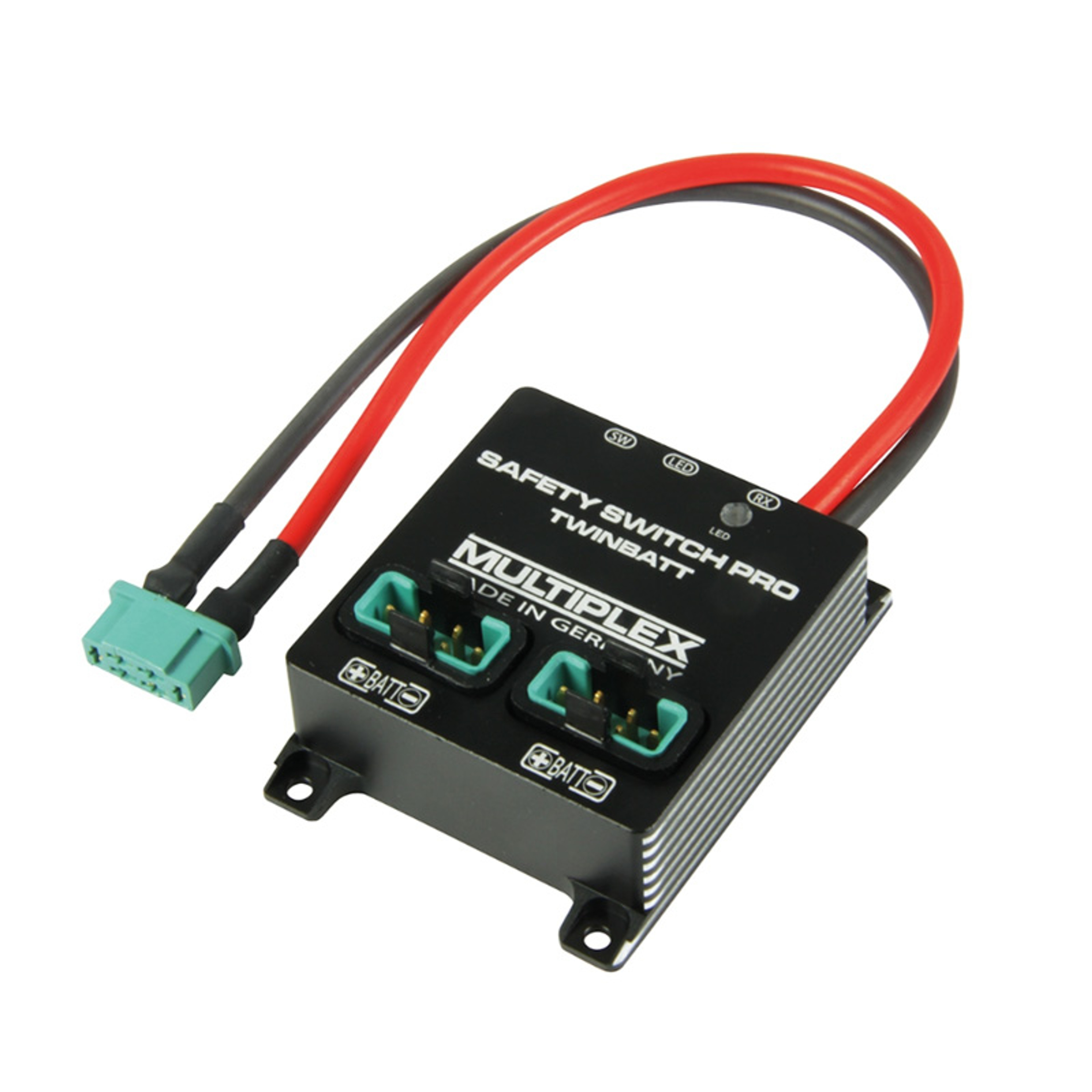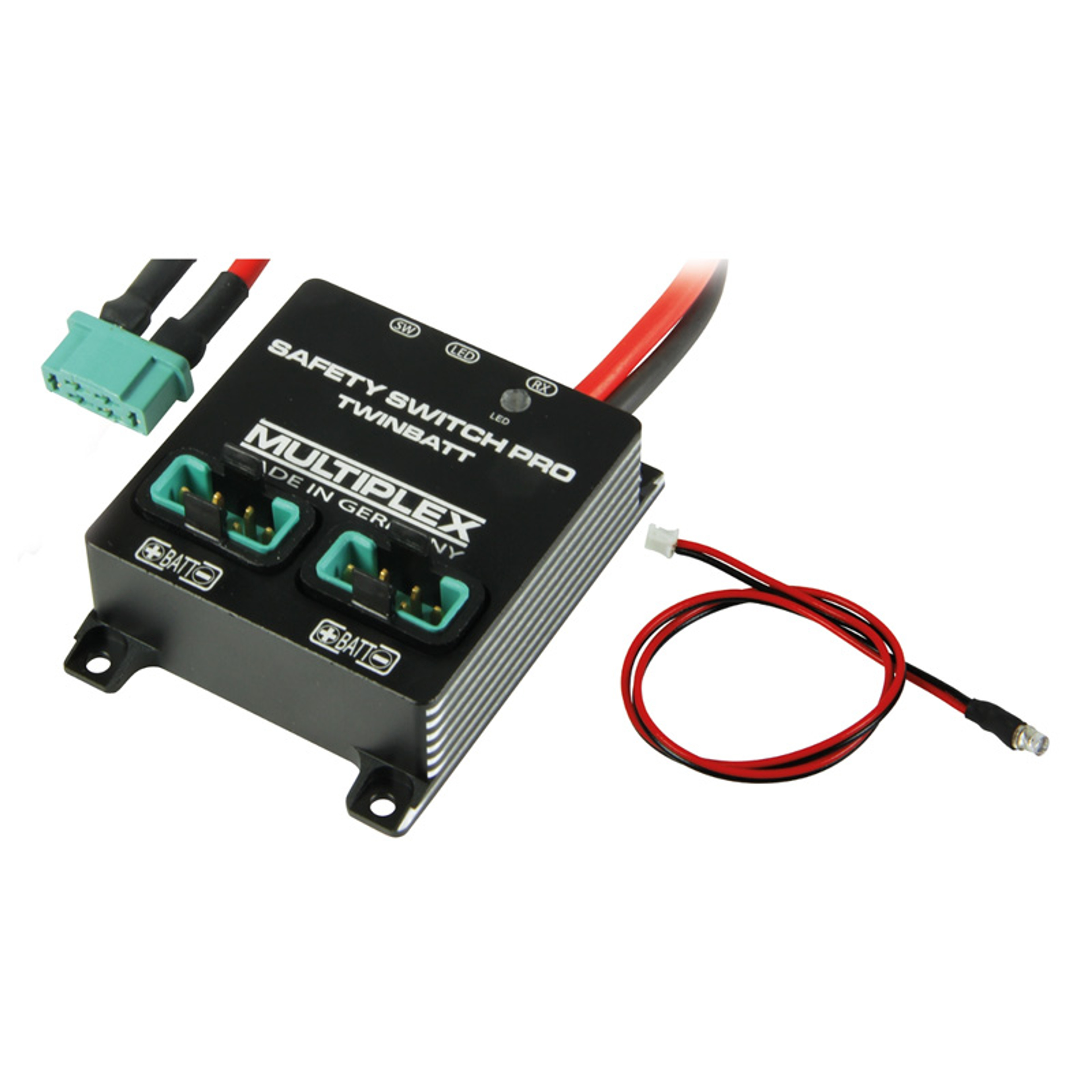 - MPX M6 high-current connection with SAFETY-SWITCH PRO TwinBatt (M6) for direct connection to the MULTIPLEX receivers RX-9/12/16-DR per M-LINK or other receivers established on the market with M6 input