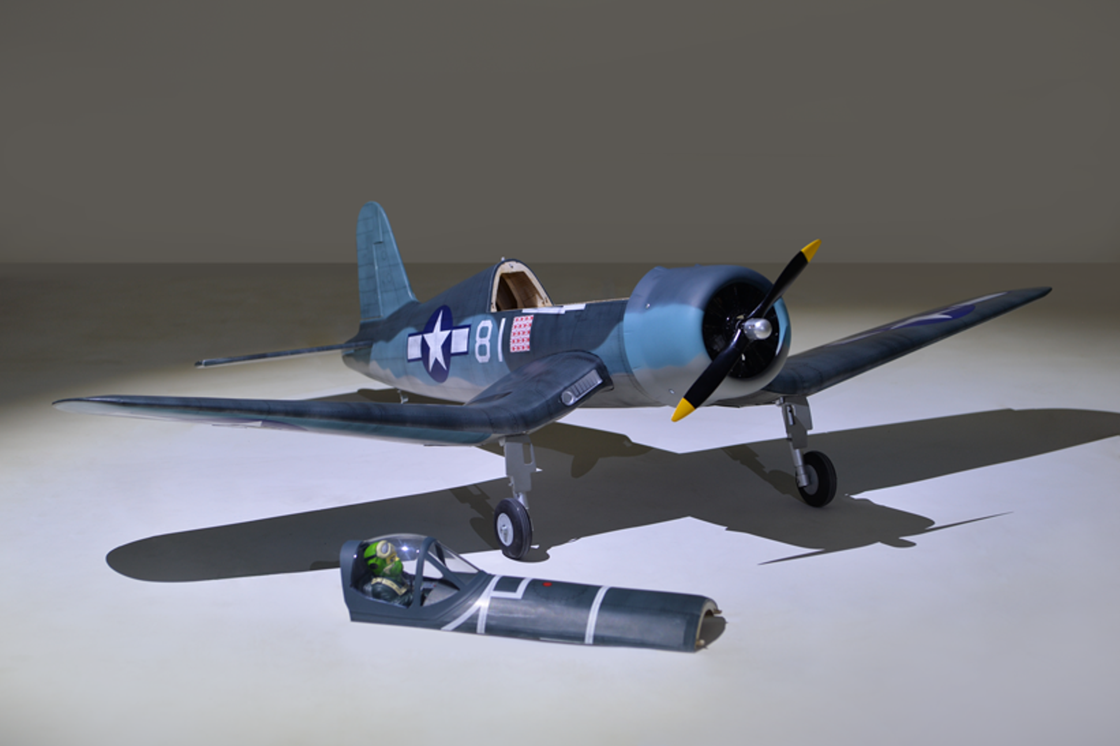 - Full-depth cockpit and instrument panel and pilot included