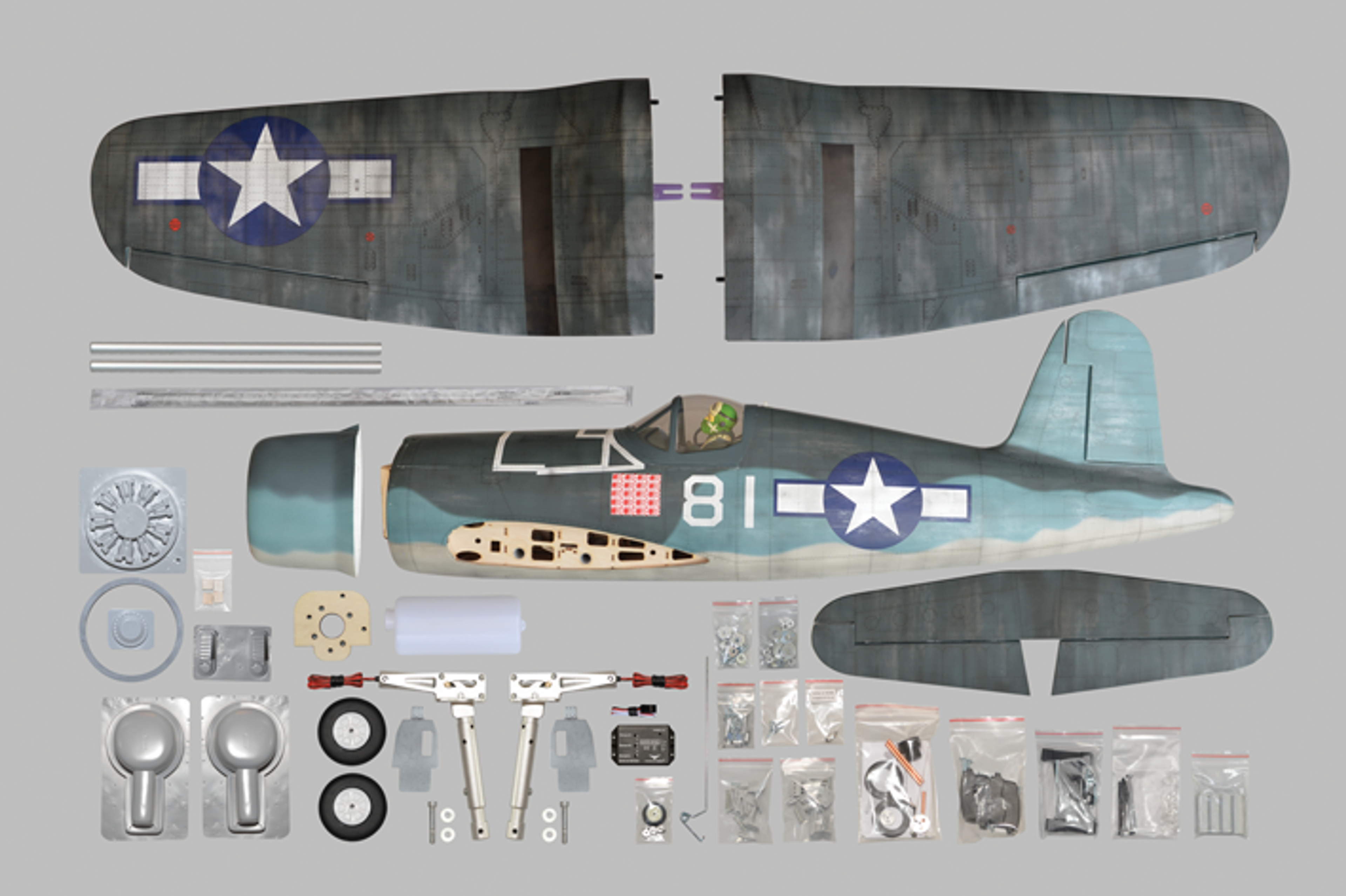 The F4U Corsair was a force to be reckoned with to the Japanese during WWII. With its gull wing design, impressive looks and power, the Corsair was one of the most recognizable WWII aircraft. Phoenix Model has recreated this outstanding Airplane to suit size .46-.55 plug engines.