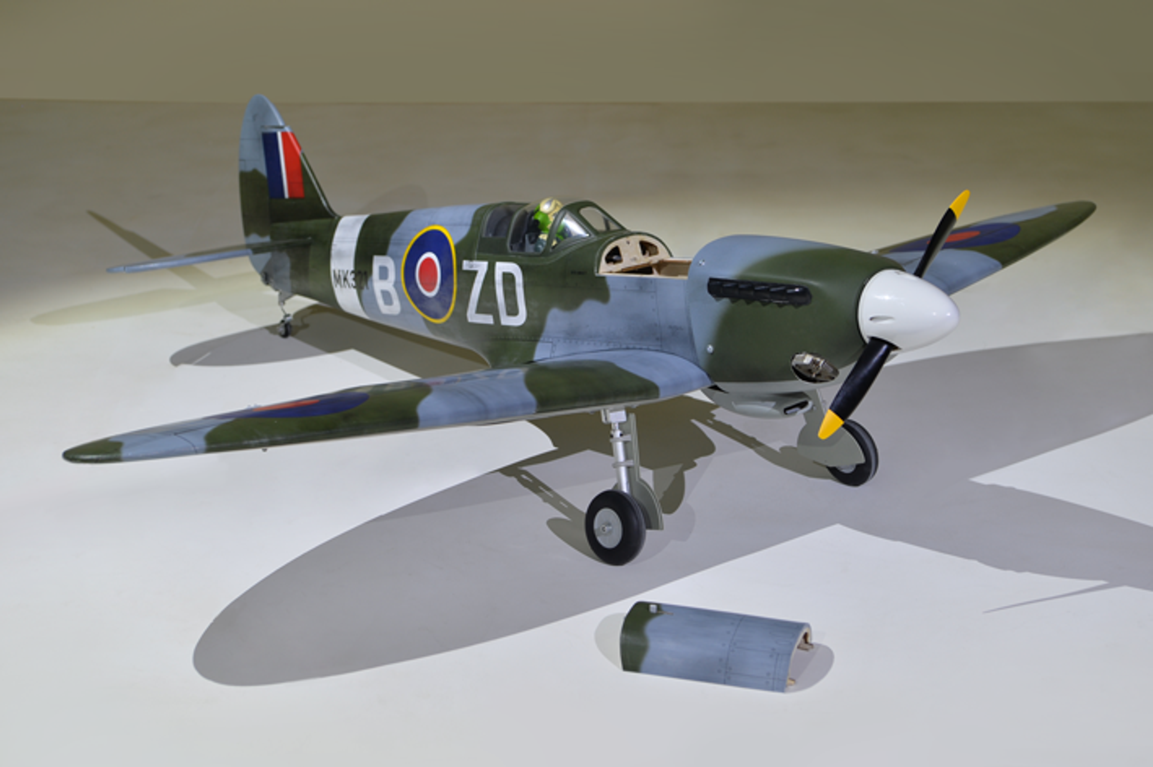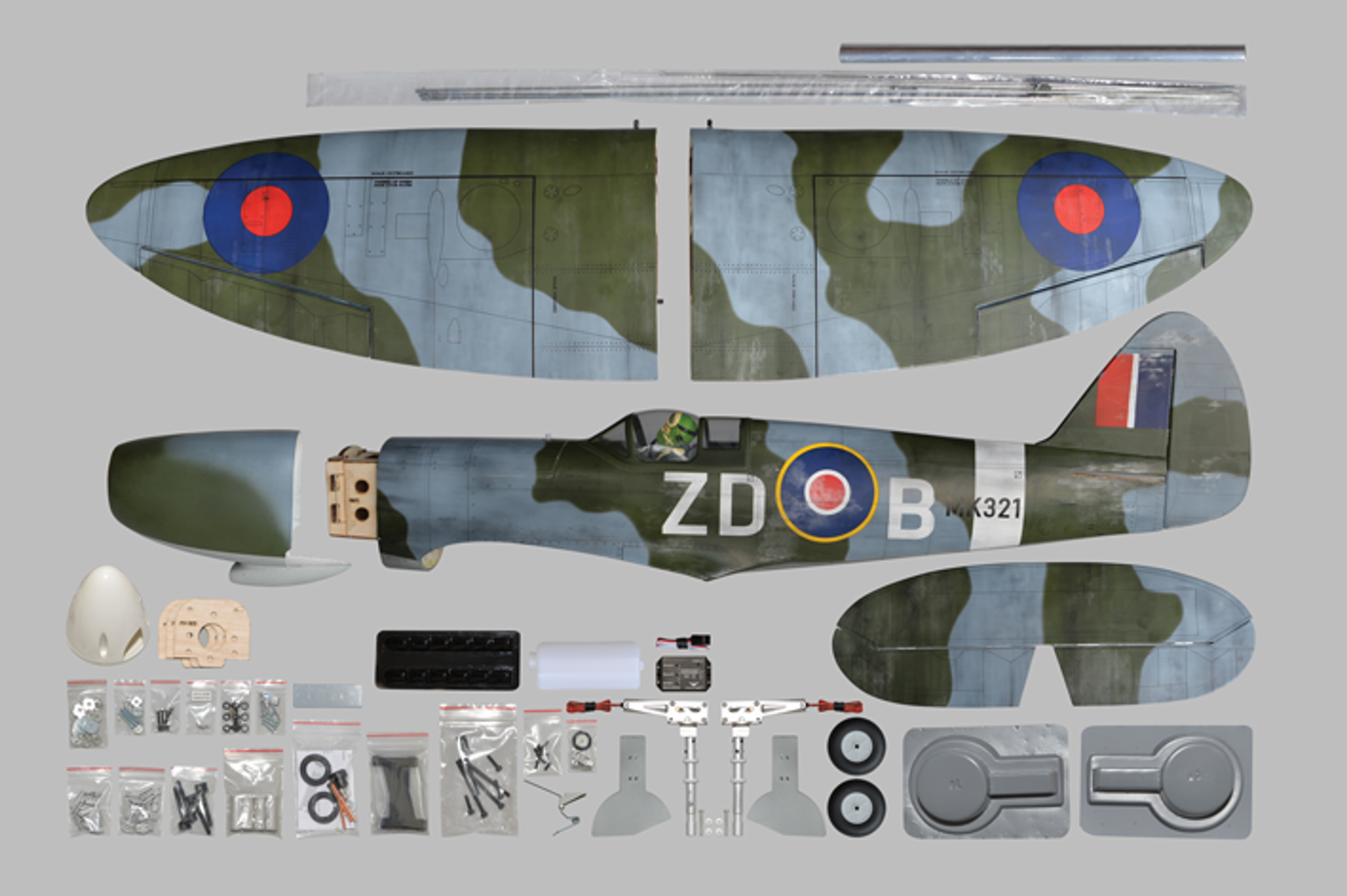 The Spitfire is the most famous warbird and the most popular radio controlled plane. Created with the scale enthusiast in mind, this almost-ready-to-fly airplane replicates the scale outline of its full-scale counterpart with accuracy. The Spitfire is packed with scale details. Including Retract landing gear and all the hardware are included (servo wire, fuel tank, wheel/landing gear, etc). You only need to separately purchase the nitro engine and radio system, and fly.