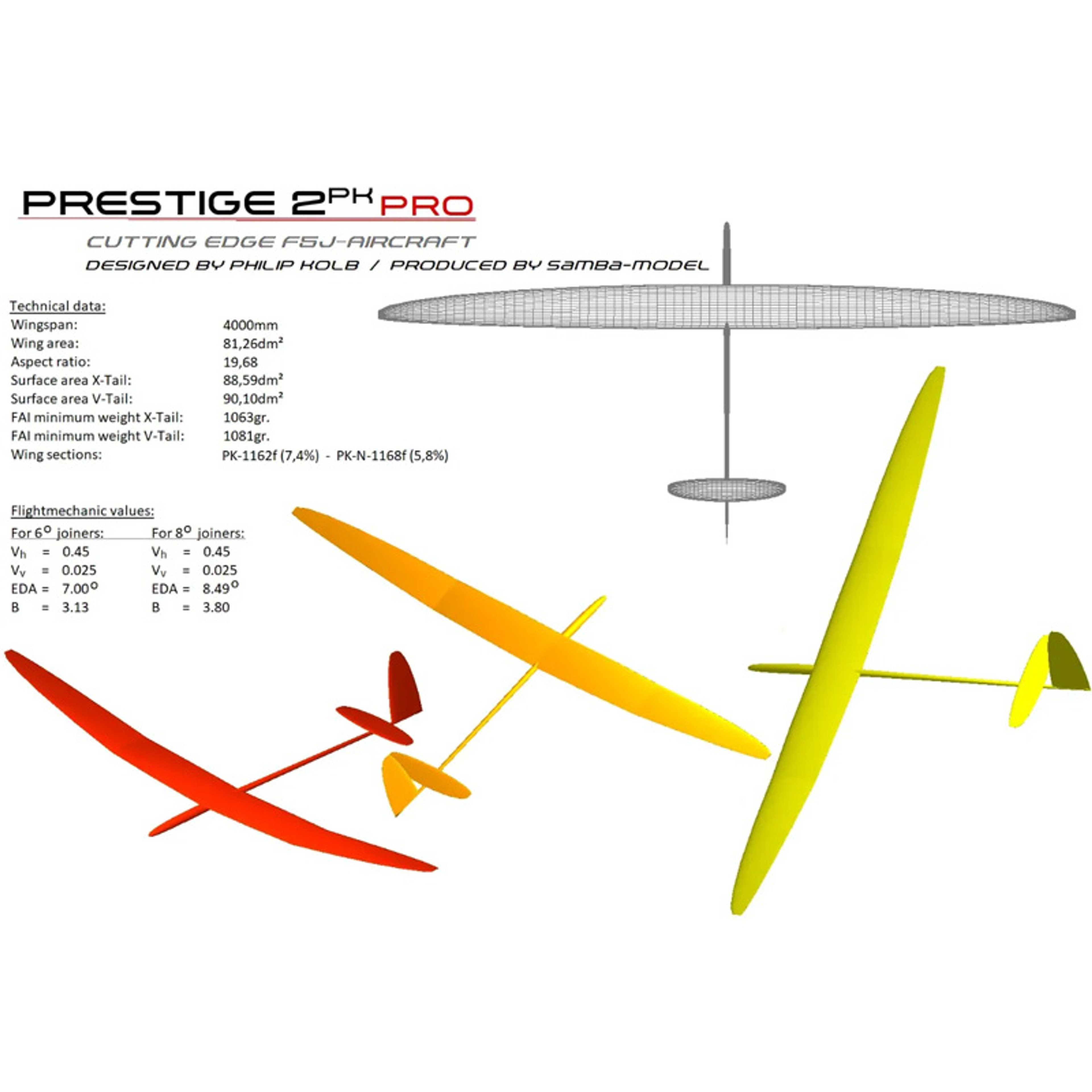 The Prestige 2PK PRO takes a great model and makes it even better. Larger span, longer tail moment and a bigger fin/rudder assembly. Designed for GPS Light Class.