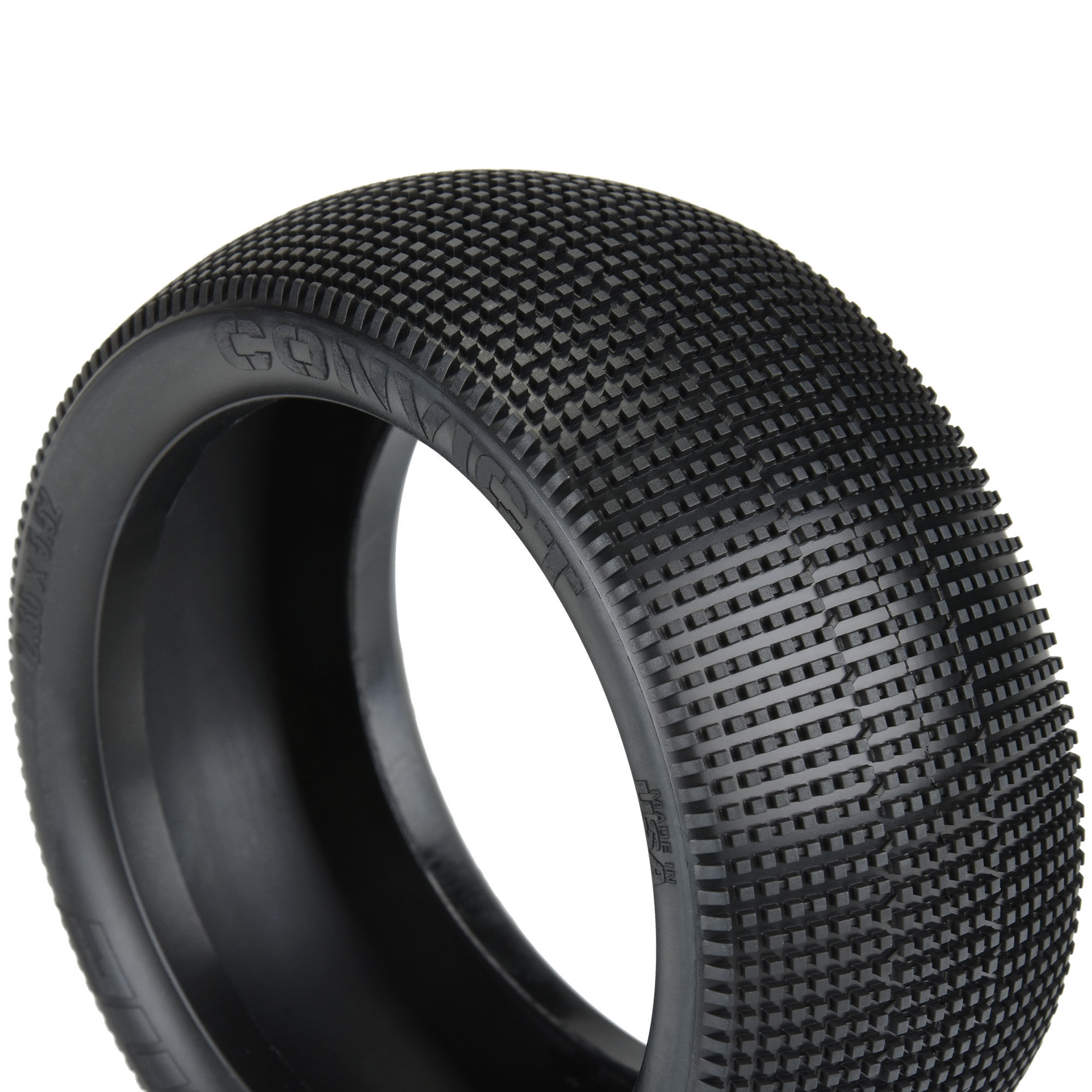 This is a pair of Convict 1/8 Truck Tires. Introducing the Convict race tire that represents Pro-Line's next-generation version of the World Champion Fugitive tire, now available for 1/8 Truck!
