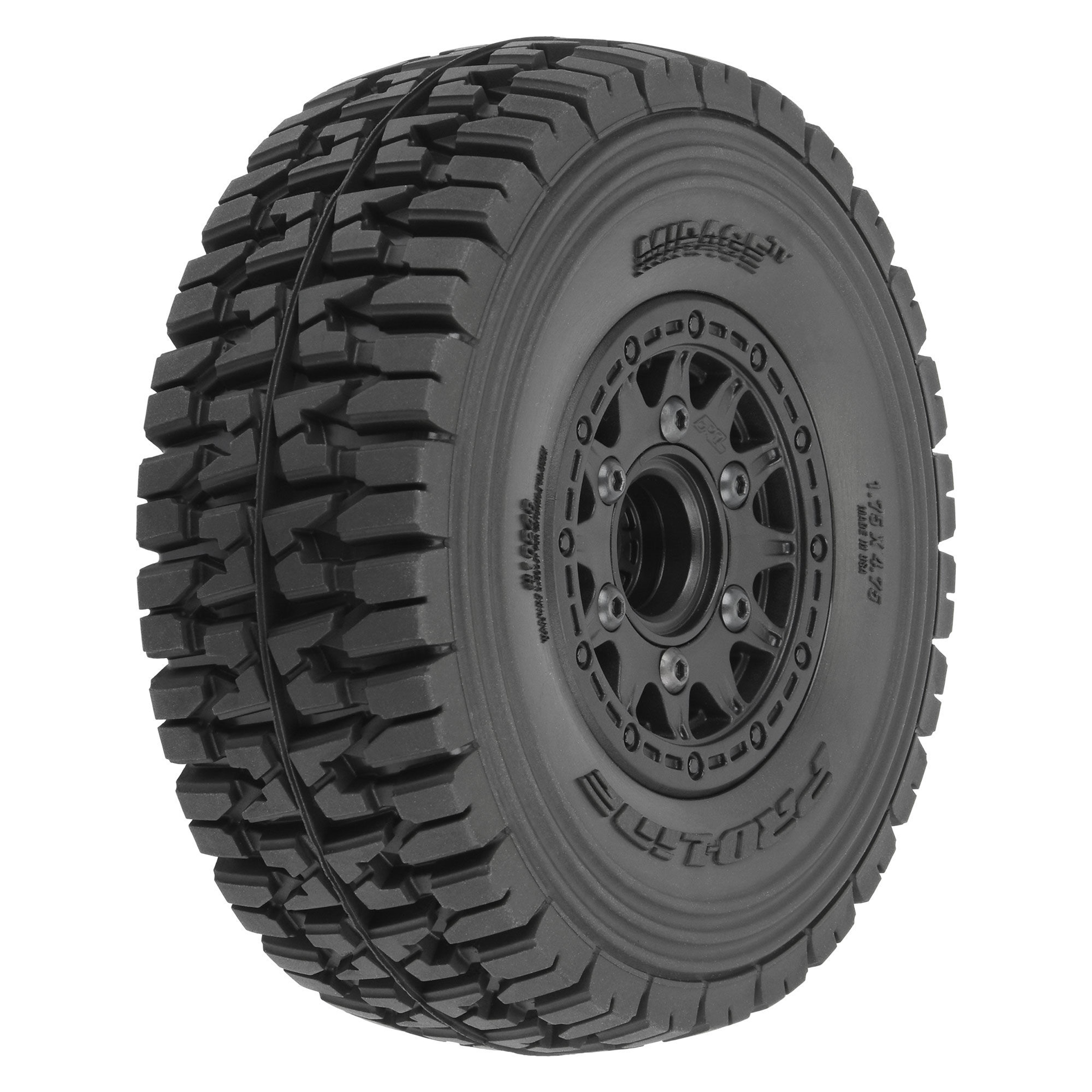 These 1/10 Mirage TT belted SCT tires are mounted on black raid wheels and are compatible with (ARA4404T1) (ARA4404T2) (LOS03019V2T1) (LOS03019V2T2)