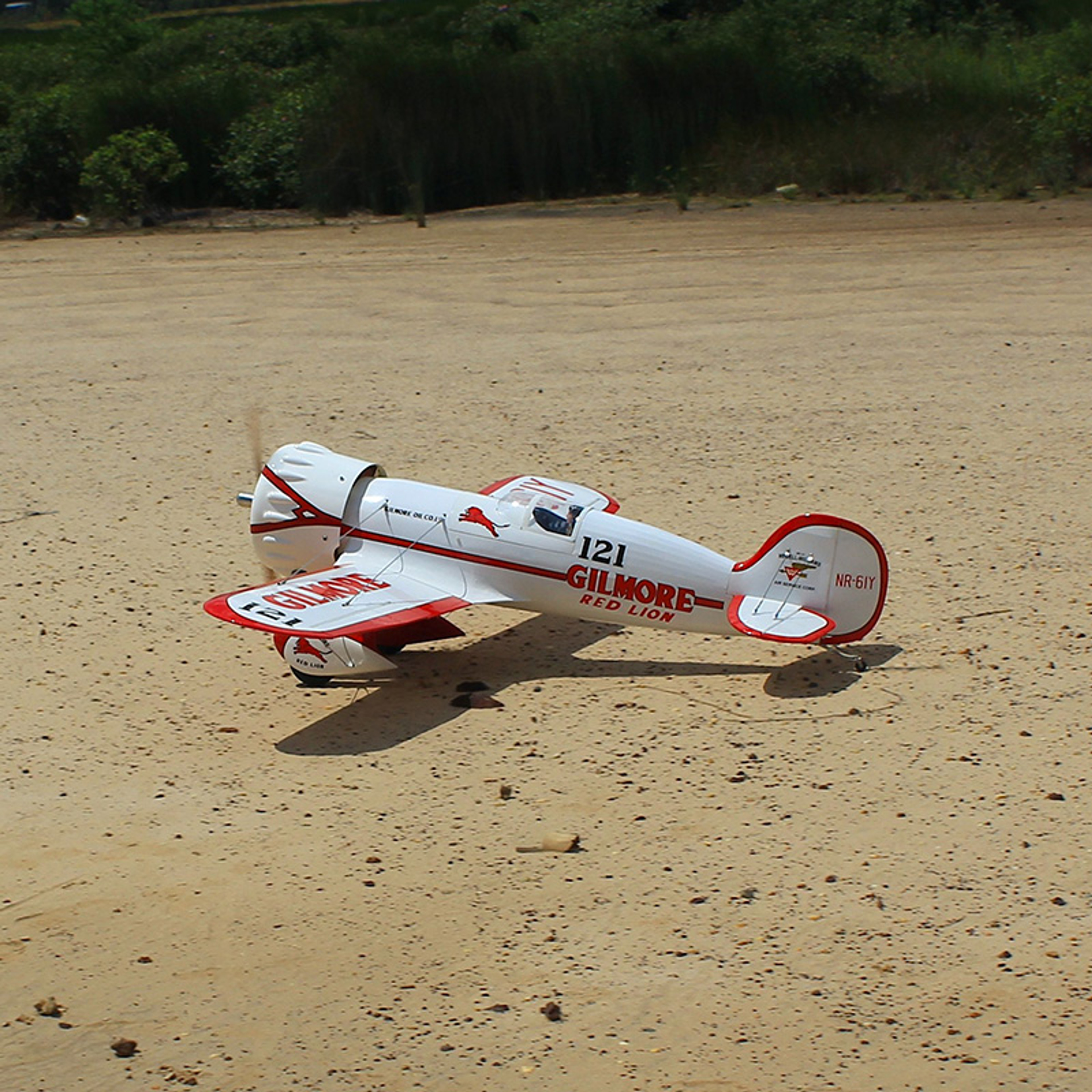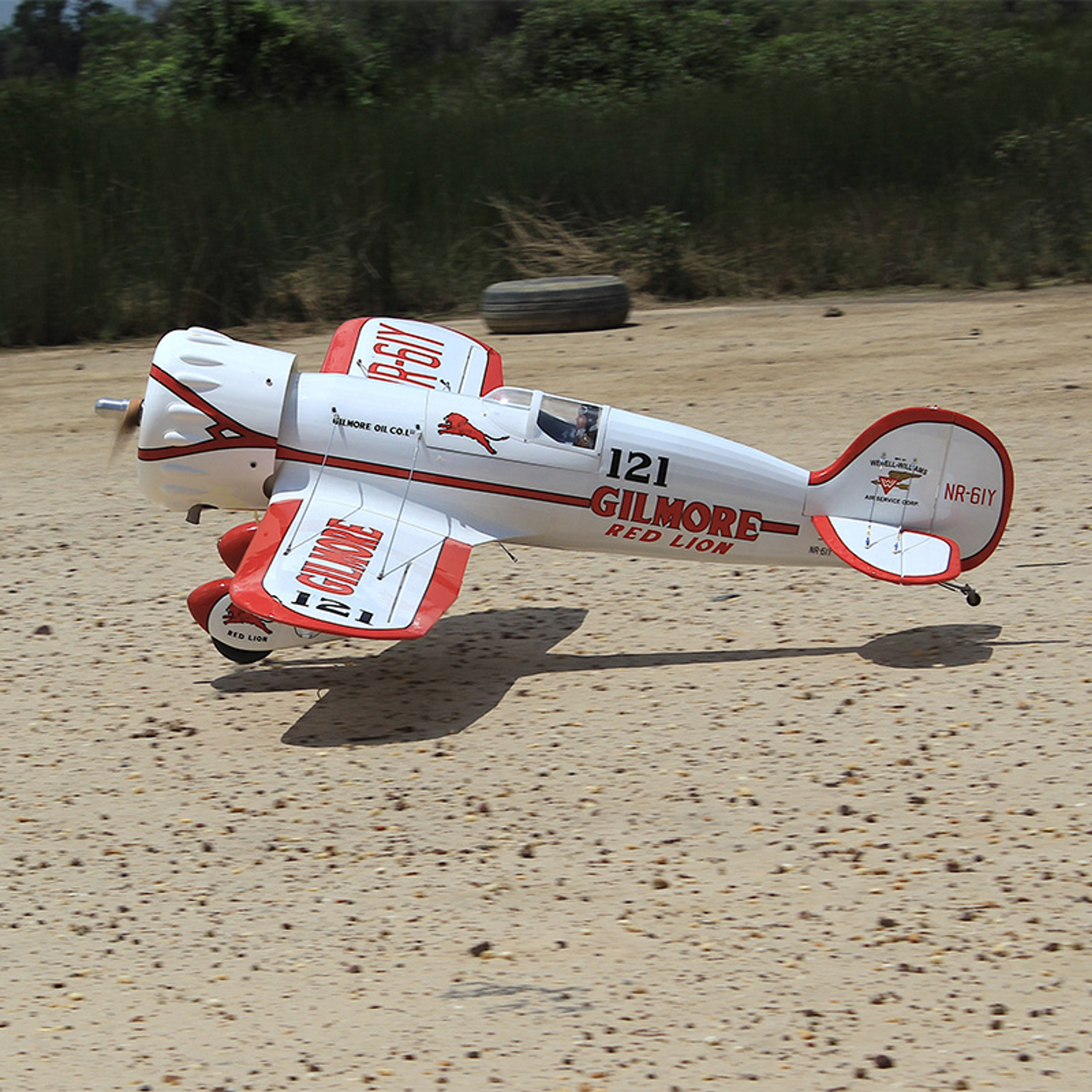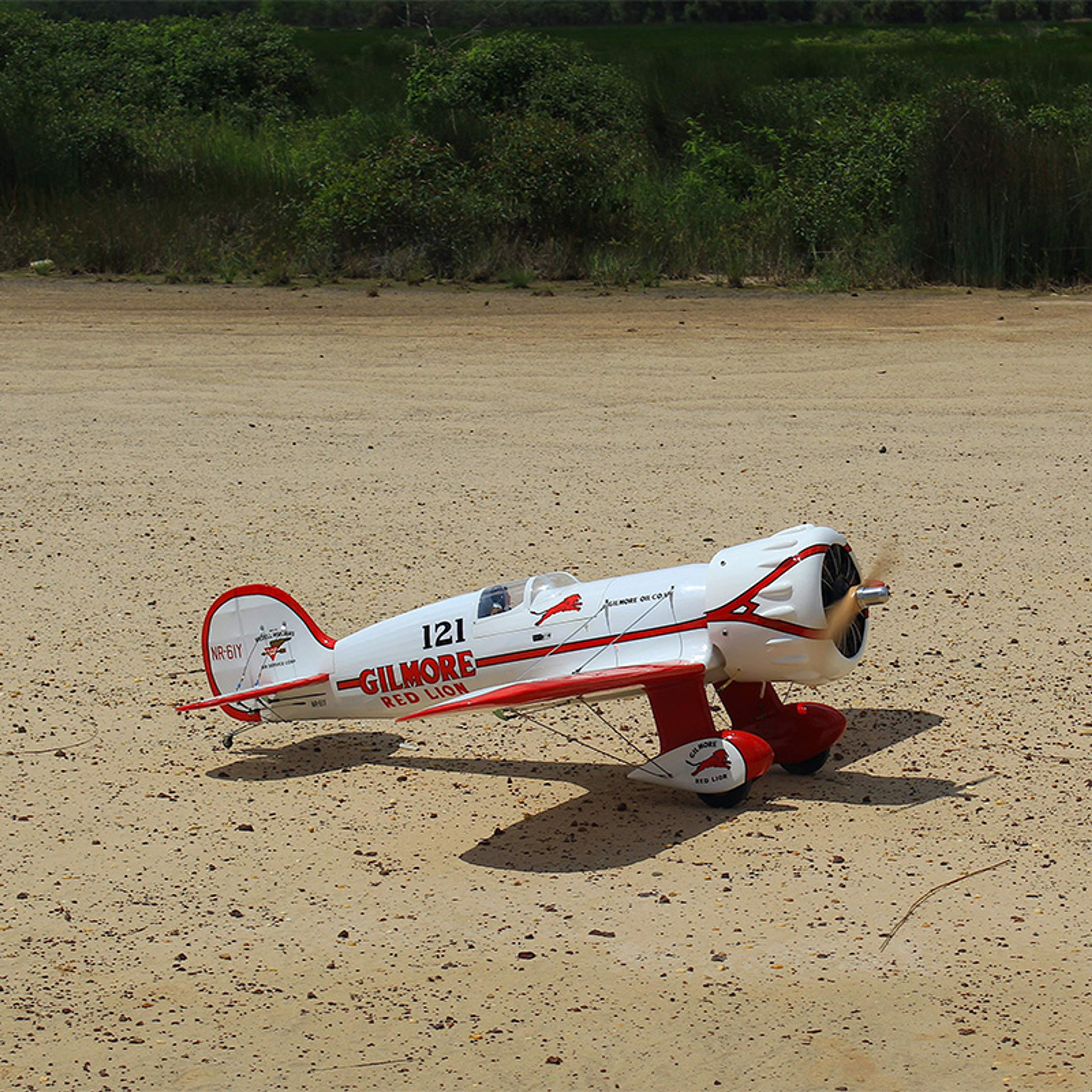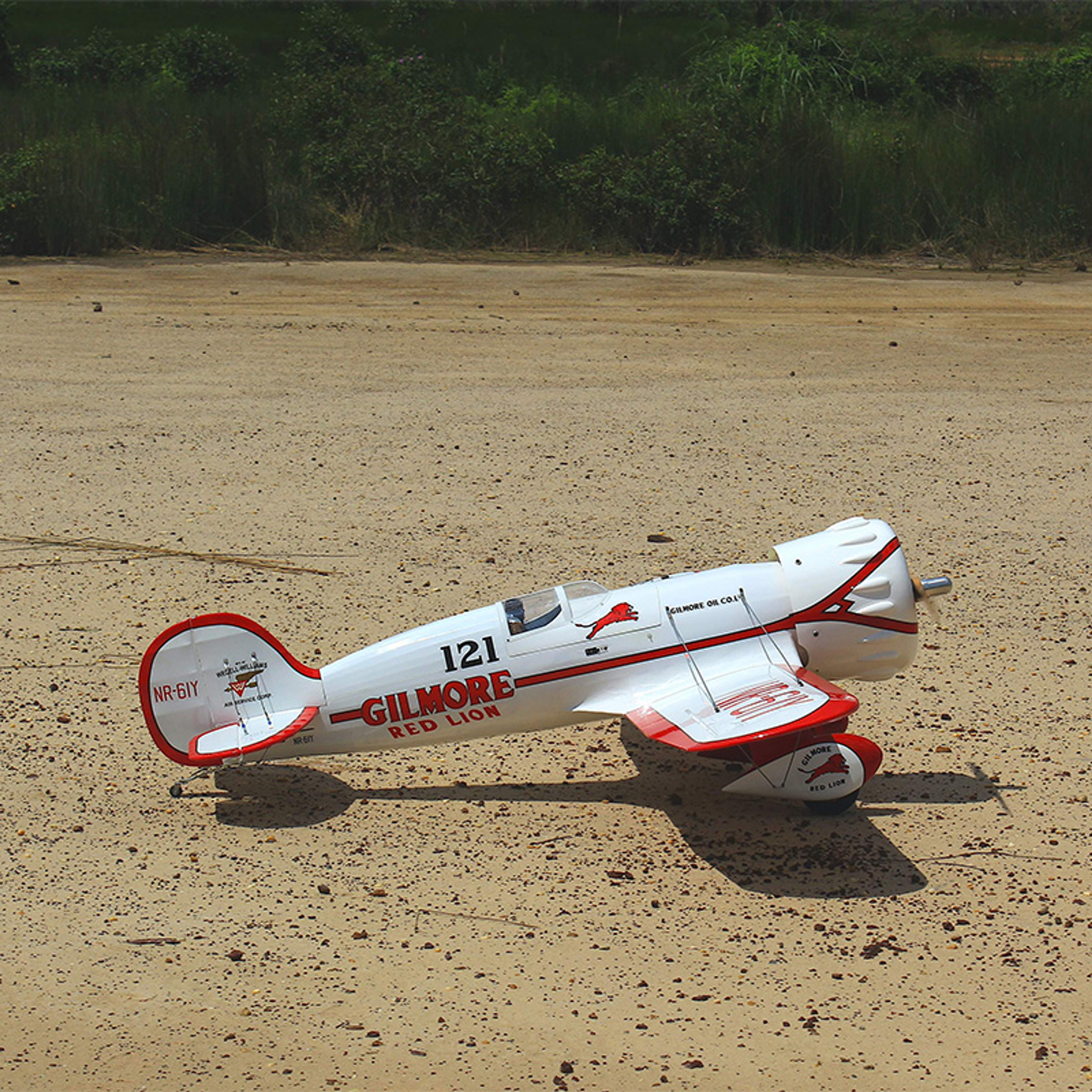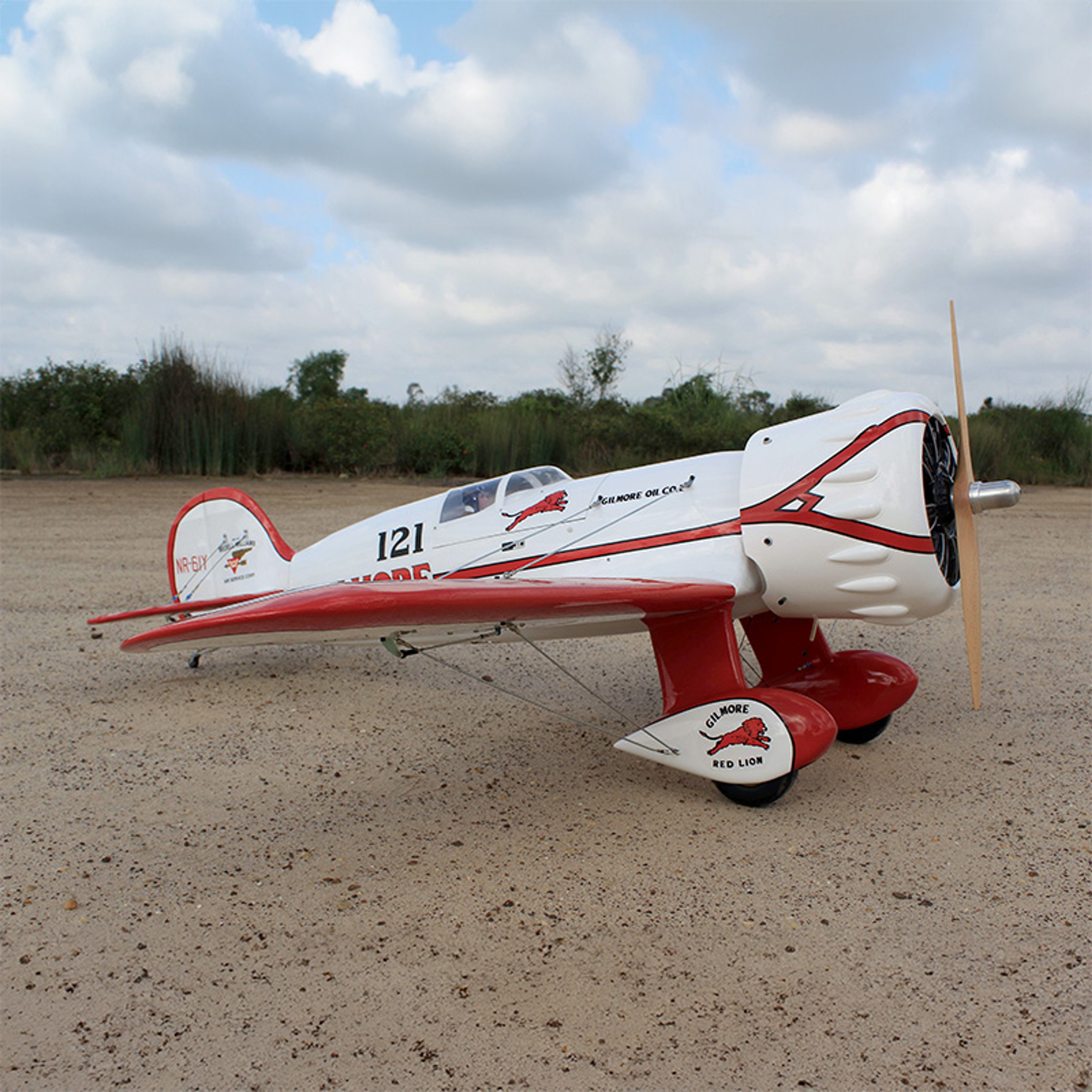Step back in time to the thrilling era of early 1930s air racing with the Wedell Williams No.44, also known as the Gilmore Red Lion Racer. This iconic aircraft, made famous by Roscoe Turner's Gilmore Special, returns to life in the form of Seagull's Gilmore Red Lion 33cc model. This meticulously crafted 81" wingspan aircraft pays homage to a true classic of the racing circuit, with its distinctive red trim and Gilmore Oil Company logos.