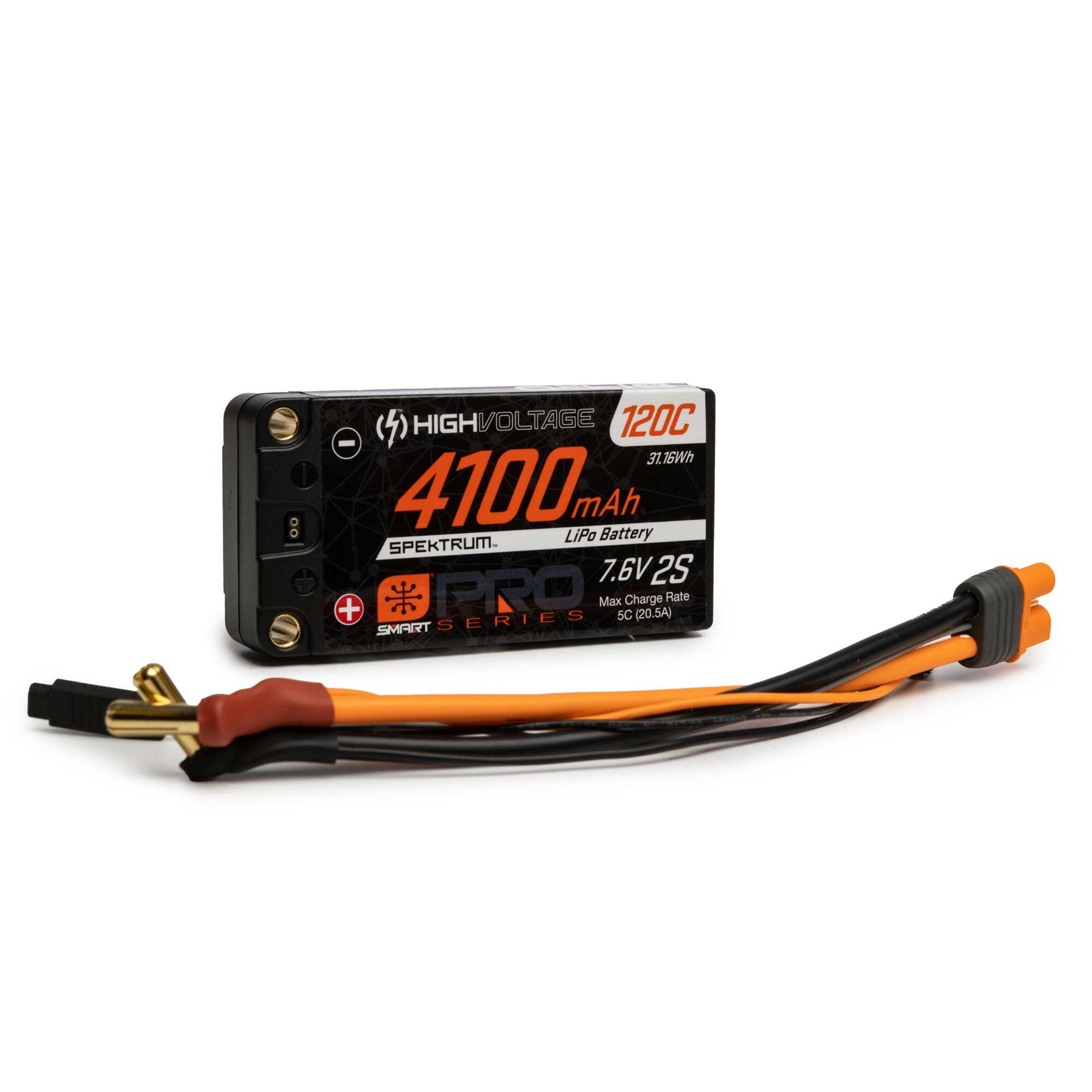 A game-changer for the RC racing community, the Spektrum Smart Pro-Series LiPo batteries feature specially formulated LiPo High Voltage Chemistry designed to provide consistently higher voltage throughout the entire run of the battery.