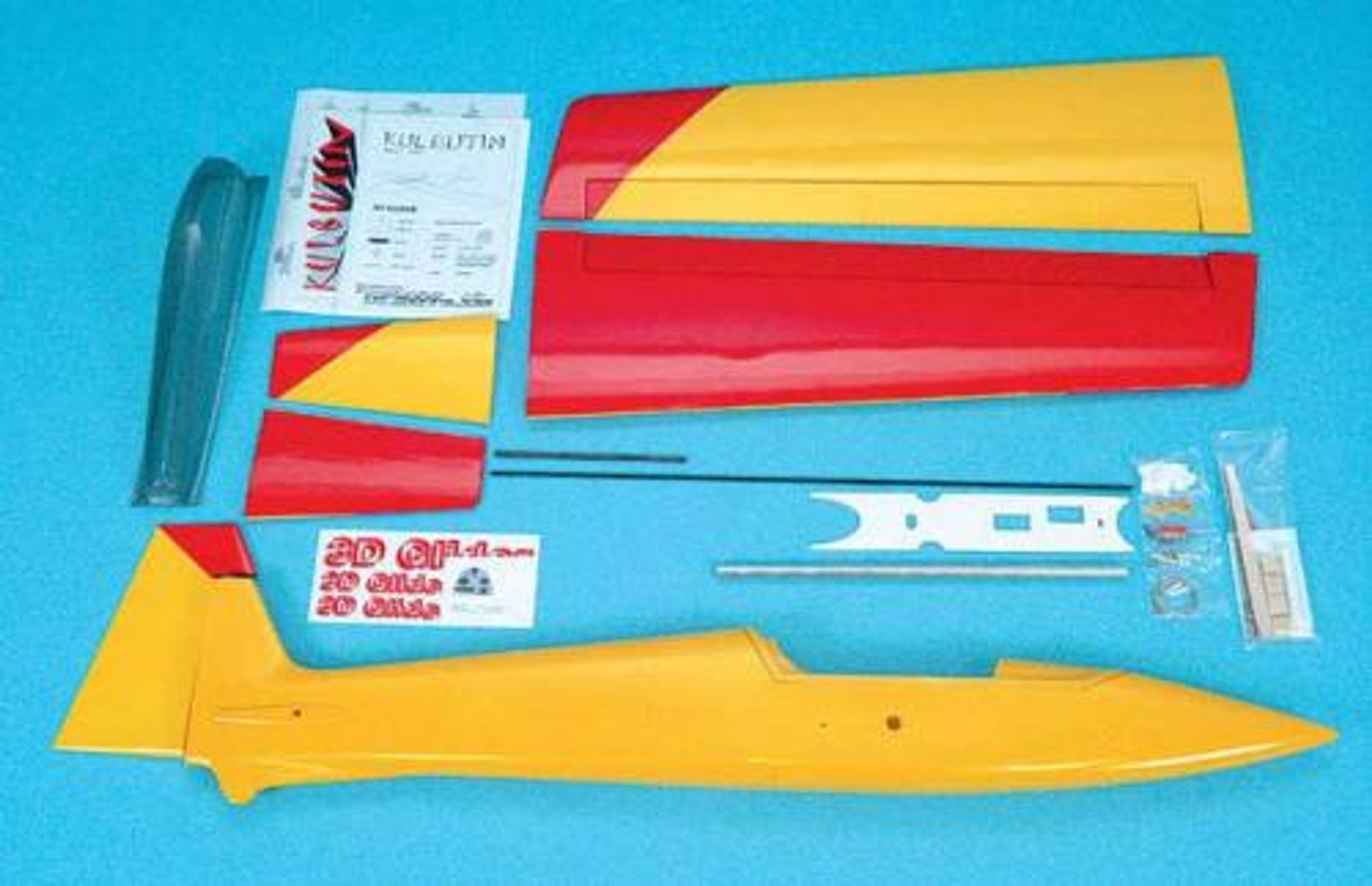 - Wing and stabilizer: pre-sheeted balsa foam core covered with Oracover®