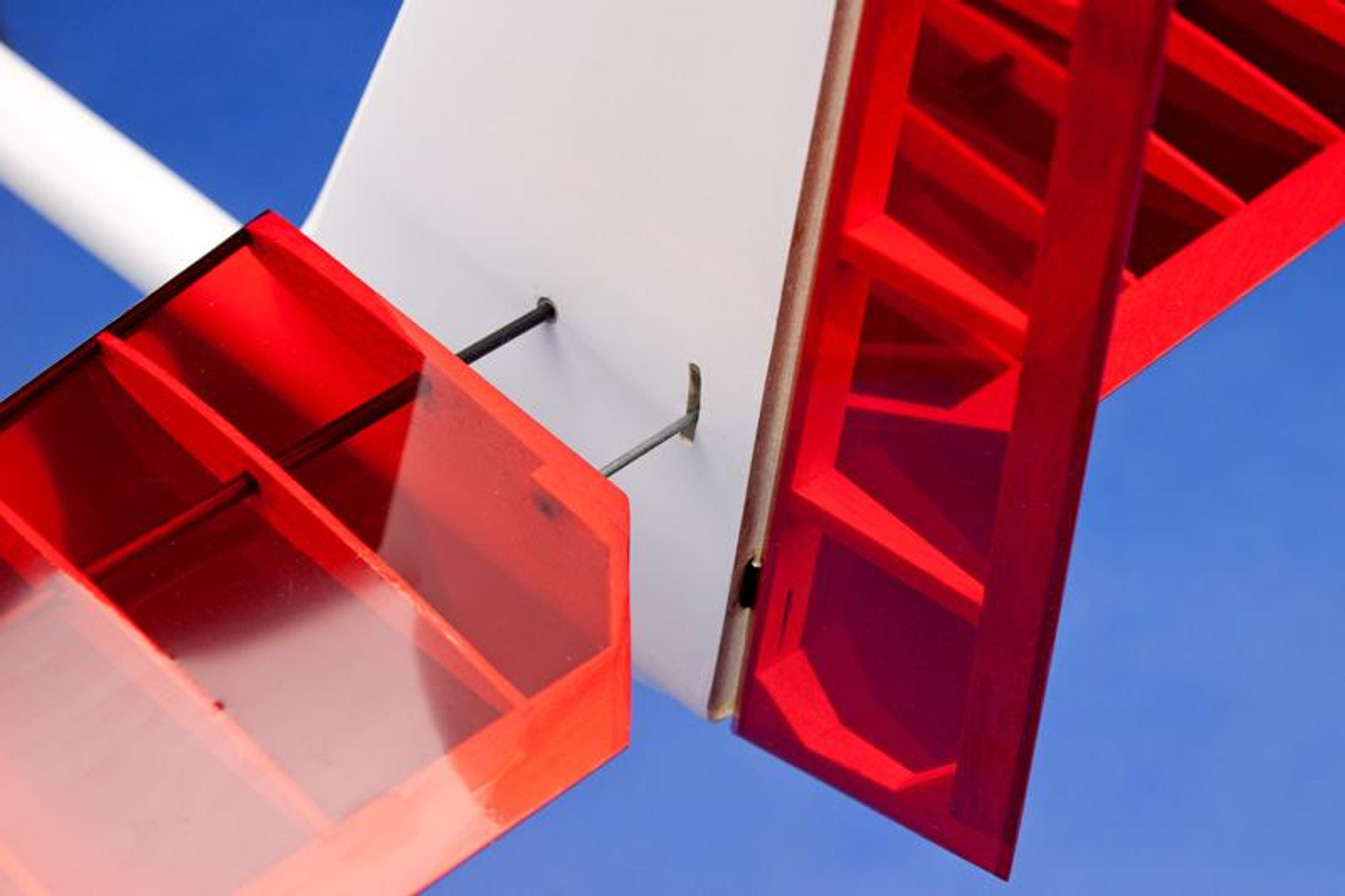 - Two piece wing is made of a balsa framework with wing joiner, leading edges and wing spar made of carbon and covered with transparent Ultracote